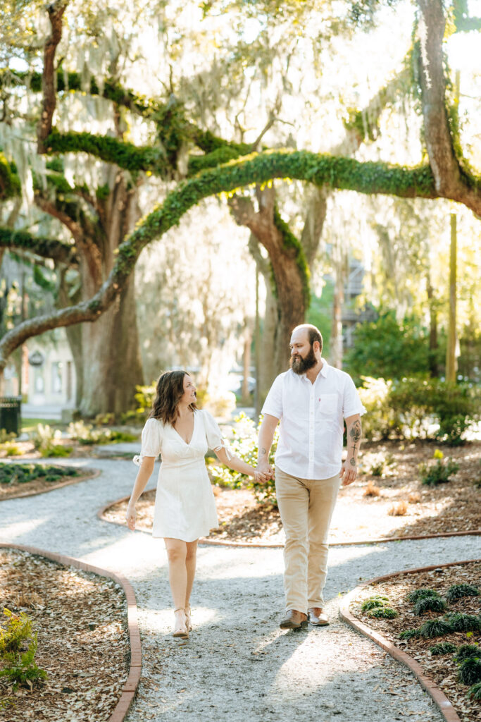 The Fragrant Garden is another favorite. A peaceful hideaway filled with blooms and sunlight. On sunny days, the light filters through the Spanish moss trees in a romantic way. It’s often secluded throughout the day, making it a perfect spot for couples seeking something more private.